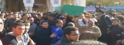 واتجه الجثمان إلى حيث مدافن الأسرة، فيما خرج المشيعون في مسيرة حاشدة باتجاه مقر المجلس العسكري.