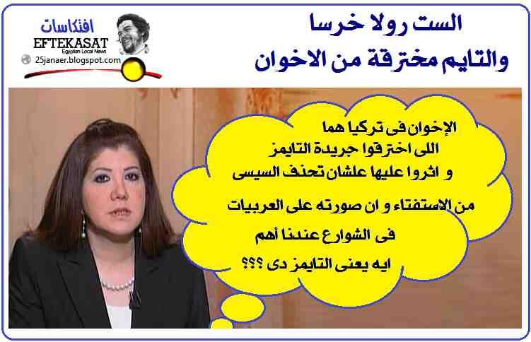 الست رولا خرسا والتايم مخترقة من الاخوان وصورة السيسى على العربيات اهم !!