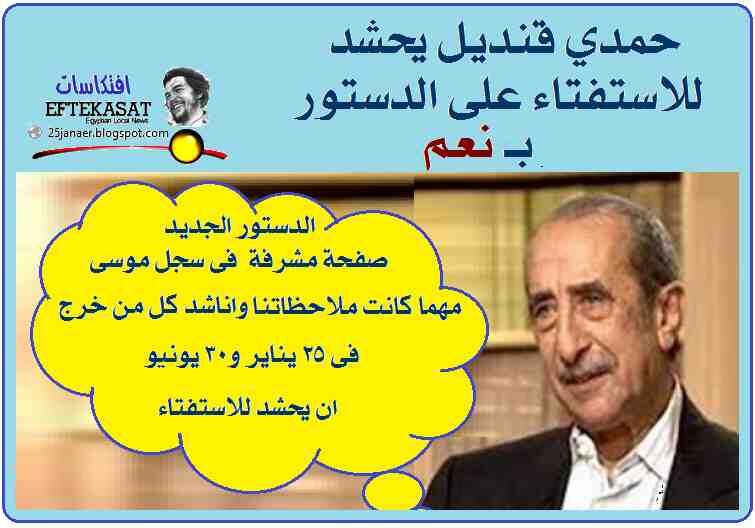 الليبرالية المصرية وعلاقتها بالمهلبية ..حمدي قنديل يحشد للاستفتاء على الدستور