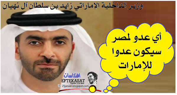 وزير الداخلية الإماراتي زايد بن سلطان آل نهيان: أي عدو لمصر سيكون عدوا للإمارات