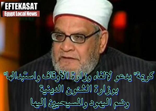 "كريمة" يدعو لإلغاء وزارة الأوقاف واستبدالها بوزارة الشئون الدينية وضم اليهود والمسيحيين إليها