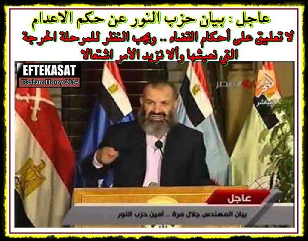 حزب النور عن حكم الاعدام لا تعليق على أحكام القضاء ..وألا نزيد الأمر اشتعالا