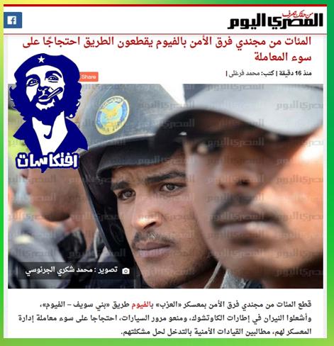 المئات من مجندي فرق الأمن بالفيوم يقطعون الطريق احتجاجًا على سوء المعاملة