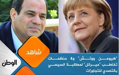 وقال فنزل ميخالسكي مدير مكتب ألمانيا في "هيومن رايتس ووتش": إن "السلطات الألمانية على علم تام بالوضع الحقوقي المروع في مصر اليوم، وعلى المستشارة ميركل أن تجهر بانتقاد سياسات الحكومة المصرية من قبيل فض المظاهرات السلمية والاعتقالات الجماعية لمجرد التعاطف المزعوم مع الإخوان المسلمين".