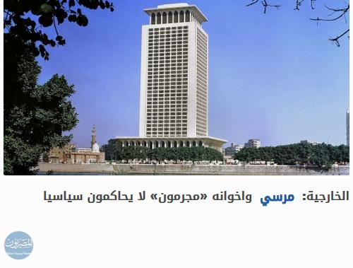 الخارجية: مرسي واخوانه «مجرمون» لا يحاكمون سياسيا
