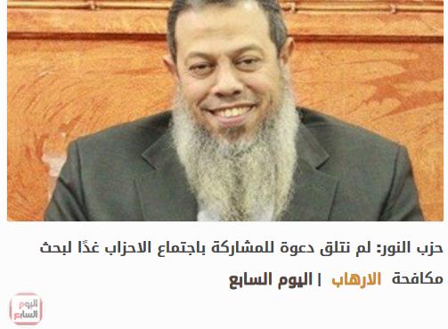 حزب النور: لم نتلق دعوة للمشاركة باجتماع الاحزاب غدًا لبحث مكافحة الارهاب