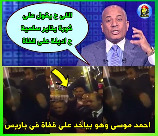 احمد موسى اللى ح يقول على ثورة يناير سلمية ح اديلة على قفاة بس هو خد على قفاة فى باريس
