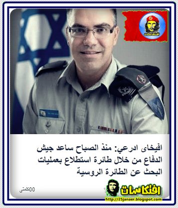افيخاى ادرعي: منذ الصباح ساعد جيش الدفاع من خلال طائرة استطلاع بعمليات البحث عن الطائرة الروسية
