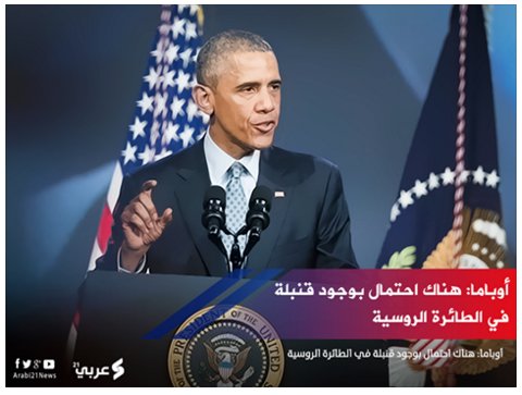 اوباما "إنه يوجد احتمال بأن يكون حادث تحطم طائرة الركاب الروسية في #مصر نجم عن قنبلة على متنها".