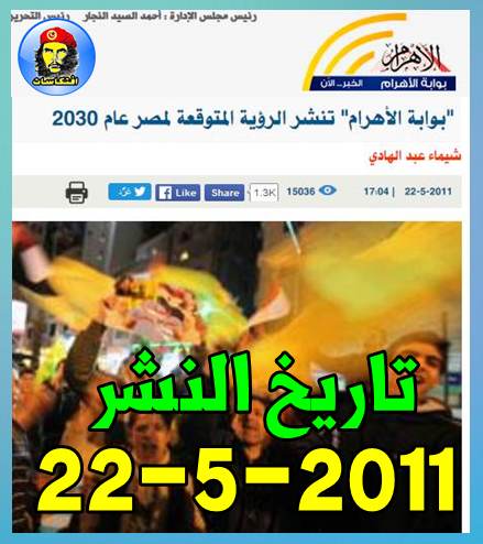 مفاجأة الاهرام تنشر بتاريخ 22/5/2011 -=- "بوابة الأهرام" تنشر الرؤية المتوقعة لمصر عام 2030