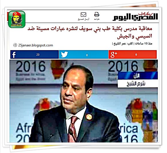 معاقبة مدرس بكلية طب بني سويف لنشره عبارات مسيئة ضد السيسي والجيش