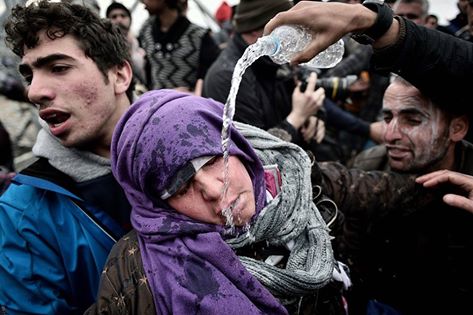 بالصور :الشرطة المقدونية تهاجم اللاجئين على حدودها مع اليونان لمنعهم من دخول البلاد