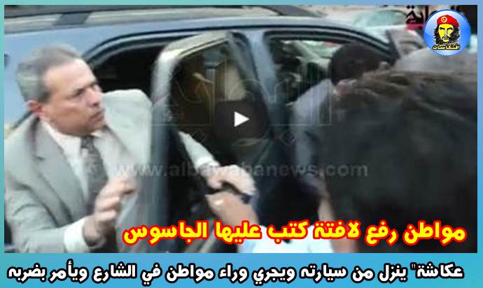 ذلك بسبب رفع الأخير لافتة كتب عليها "الجاسوس