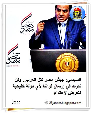 السيسي : جيش مصر لكل العرب ولن نتردد في إرسال قواتنا لأي دولة خليجية تتعرض لاعتداء