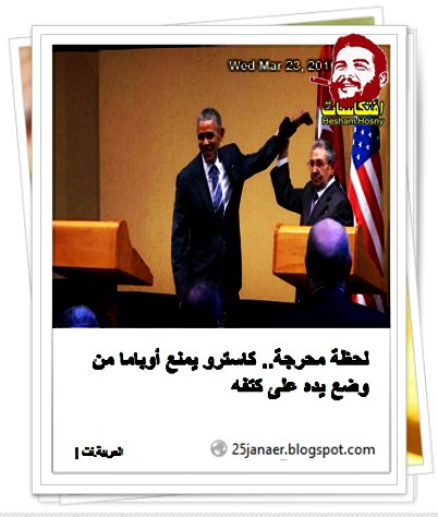 لحظة محرجة.. كاسترو يمنع أوباما من وضع يده على كتفه