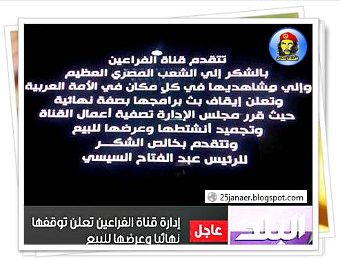 عاجل.. إدارة قناة الفراعين تعلن توقفها نهائيا وعرضها للبيع
