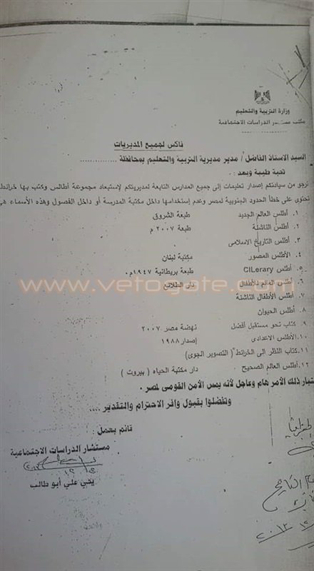 وحصلت «فيتو» على نسخة من «الفاكس» منسوب صدوره لوزارة التربية والتعليم.