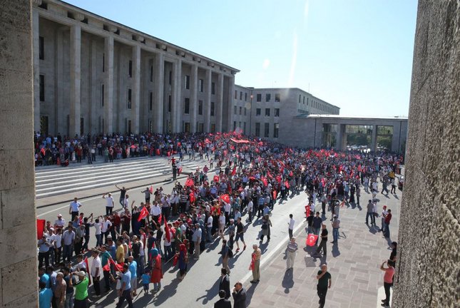 بالصور : آلاف المواطنين الأتراك يحتشدون بالعاصمة التركية #أنقرة، تأييدًا للحكومة التركية ورفضًا لمحاولة الانقلاب الفاشلة.