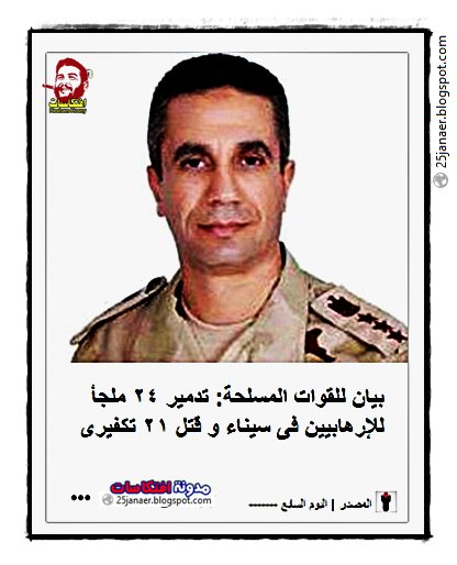 بيان للقوات المسلحة: تدمير ٢٤ ملجأ للإرهابيين فى سيناء و قتل ٢١ تكفيرى