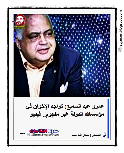 مدونة اخبارية تهتم بالتوثيق لثورة 25 يناير.الحقيقة.مازلت اسعى لنقلها كاملة بلا نقصان .اخطئ لكنى منحاز لها .لايعنينى سلفى ولا مسلم ولا اخوان يعنينى الانسان،
