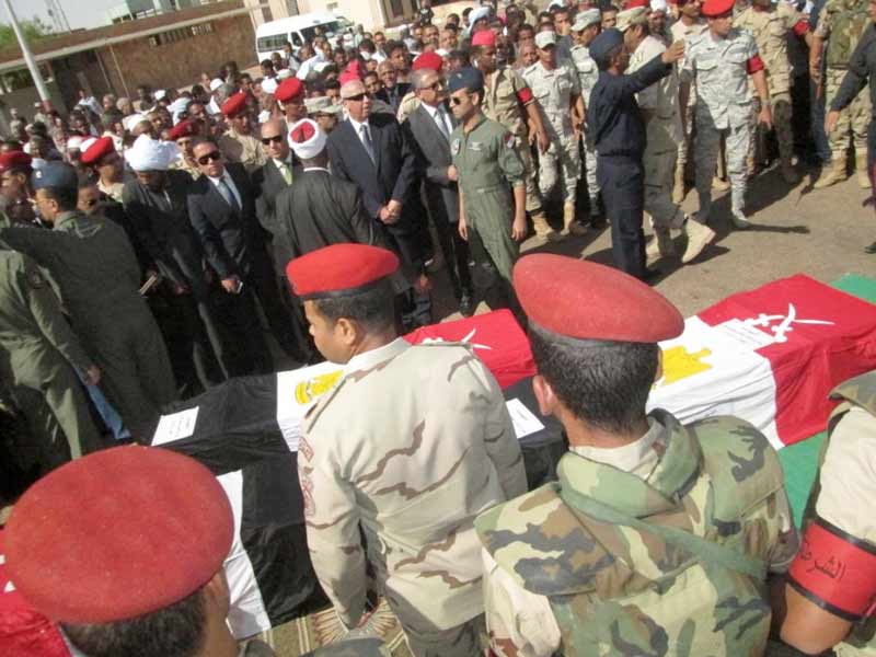 بالصور : وصول جثامين 3 من شهداء كمين "الغاز"بشمال سيناء، إلى مطار أسوان