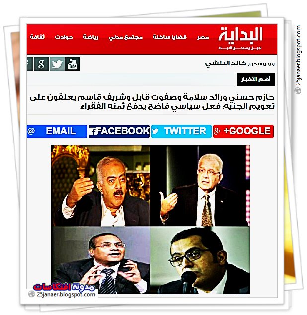 author ‏مدونة اخبارية تهتم بالتوثيق لثورة 25 يناير.الحقيقة.مازلت اسعى لنقلها كاملة بلا نقصان .اخطئ لكنى منحاز لها .لايعنينى سلفى ولا مسلم ولا اخوان يعنينى الانسان،