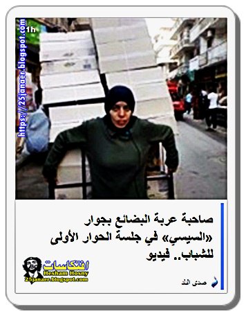 صاحبة عربة البضائع بجوار «السيسي» في جلسة الحوار الأولى للشباب.
