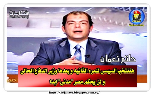 حاتم نعمان هننتخب السيسى للمره الثانيه و بعدها وزير الدفاع الحالى و لن يحكم مصر "مدنى" ابدا