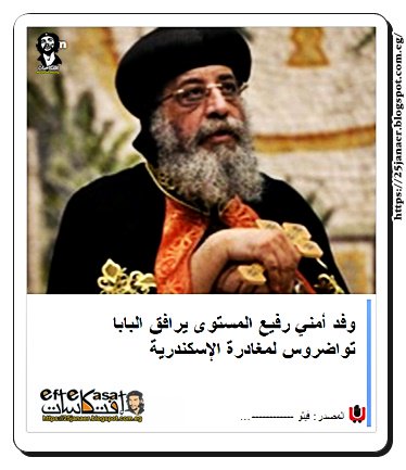 وفد أمني رفيع المستوى يرافق البابا تواضروس لمغادرة الإسكندرية