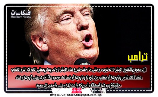 ترامب : آل سعود يشكلون البقرة الحلوب، ومتى ما جف ضرع هذه البقرة ولم يعد يعطي الدولارات والذهب عند ذلك نأمر بذبحها