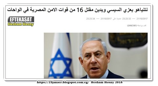 نتنياهو يعزي السيسي ويدين مقتل 16 من قوات الامن المصرية في الواحات