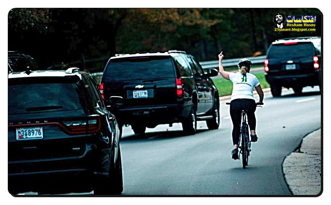 فتاة أمريكية تتريض ، مر عليها موكب الرئيس ترامب فأشارت إليه بأصبعها الوسطى إشارة بذيئة ، وأكملت رياضتها وأكمل هو سيره ، تخيل السيناريو لو كانت في مصر
