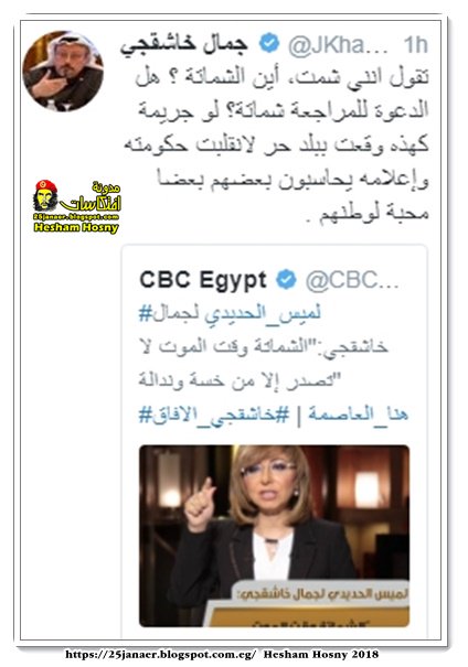 جمال خاشقجي للميس الحديدى تقول انني شمت، أين الشماتة ؟ هل الدعوة للمراجعة شماتة؟