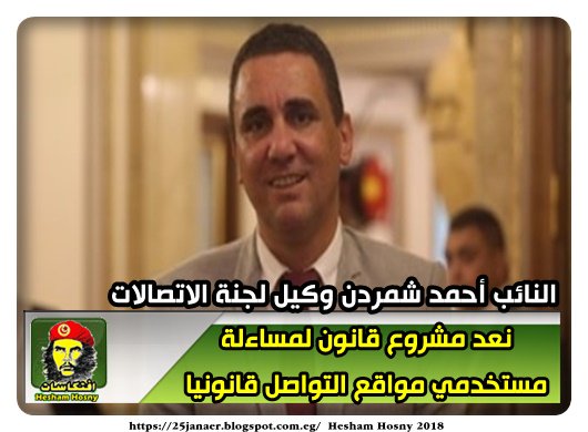 النائب أحمد شمردن وكيل لجنة الاتصالات نعد مشروع قانون لمساءلة مستخدمي مواقع التواصل قانونيا