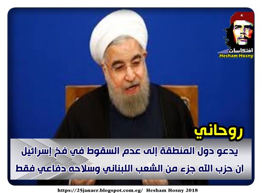 روحاني يدعو دول المنطقة إلى عدم السقوط في فخ إسرائيل ان حزب الله جزء من الشعب اللبناني وسلاحه دفاعي فقط