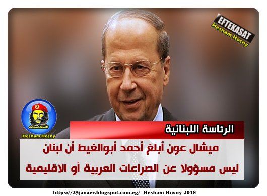 ميشال عون أبلغ أحمد أبوالغيط أن لبنان ليس مسؤولا عن الصراعات العربية أو الاقليمية