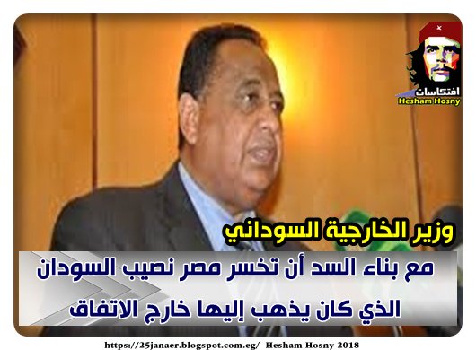وزير الخارجية السوداني مع بناء السد أن تخسر مصر نصيب السودان الذي كان يذهب إليها خارج الاتفاق