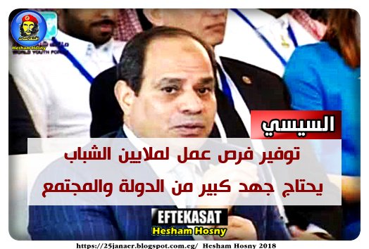 السيسي توفير فرص عمل لملايين الشباب يحتاج جهد كبير من الدولة والمجتمع
