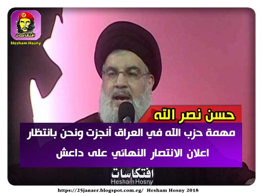 حسن نصر الله: مهمة حزب الله في العراق أنجزت ونحن بانتظار اعلان الانتصار النهائي على داعش