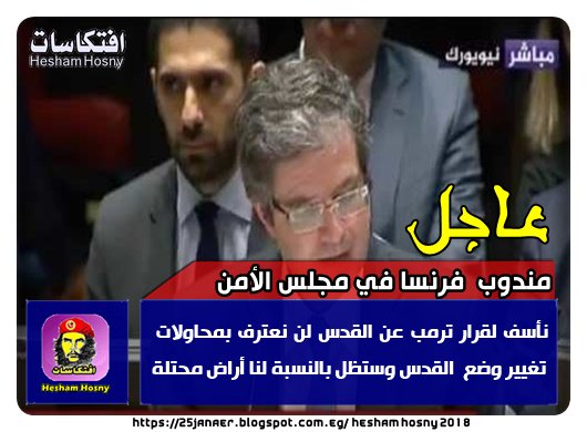 مندوب فرنسا في مجلس الأمن نأسف لقرار ترمب عن القدس لن نعترف بمحاولات تغيير وضع القدس وستظل بالنسبة لنا أراض محتلة