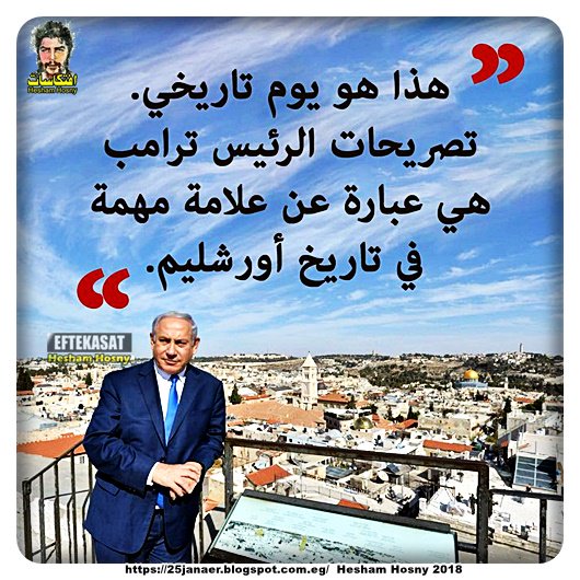 نتنياهو تعقيبا على اعتراف الرئيس ترامب باورشليم #القدس عاصمة لإسرائيل: "هذا هو يوم تاريخي. تصريحات الرئيس ترامب هي عبارة عن علامة مهمة في تاريخ أورشليم. أورشليم هي عاصمتنا منذ 3000 عام. هنا كان يمشى آباءنا وهنا كان هيكلنا وهنا حكم ملوك إسرائيل وهنا وعظ أنبياءنا"