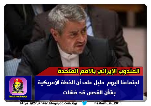 المندوب الإيراني بالامم المتحدة اجتماعنا اليوم دليل على أن الخطة الأمريكية بشأن القدس قد فشلت