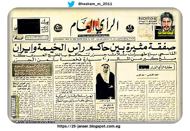 عنونت الصحيفة عددها المشار إليه بالخط العريض : صفقة مثيرة بين حاكم رأس الخيمة وإيران.
