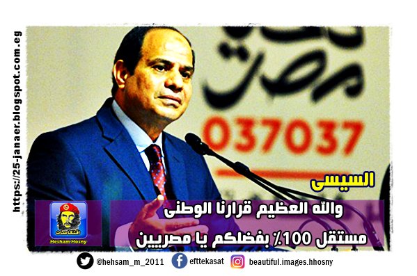 السيسى والله العظيم قرارنا الوطنى مستقل 100% بفضلكم يا مصريين