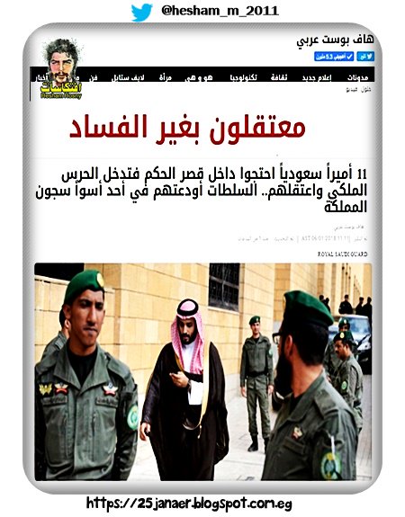 معتقلون بغير الفساد 11 أميراً سعودياً احتجوا مطالبين بإلغاء الأمر الملكي الذي نص على إيقاف سداد الكهرباء والمياه عن الأمراء". داخل قصر الحكم فتدخل الحرس الملكي واعتقلهم السلطات أودعتهم في أحد أسوأ سجون المملكة