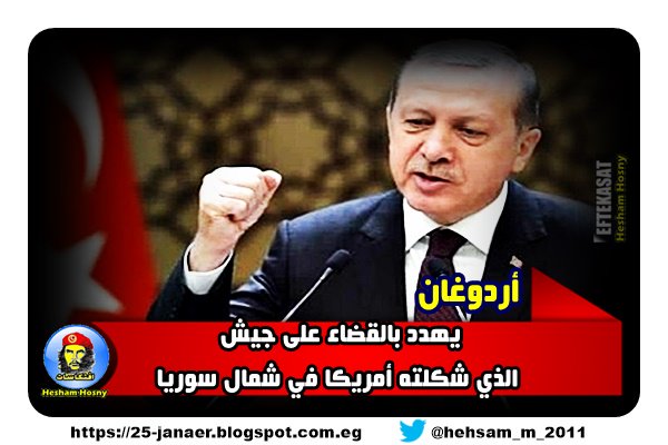 أردوغان :يهدد بالقضاء على جيش الذي شكلته أمريكا في شمال سوريا