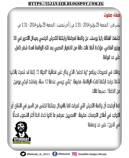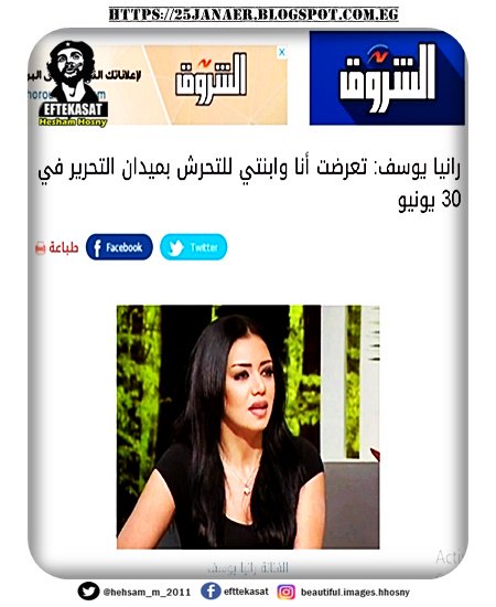 كشفت الفنانة رانيا يوسف، عن واقعة تعرضها وابنتها للتحرش الجنسي بميدان التحرير في 30 يونيو الماضي، مؤكدة أنها عانت حالة من الانهيار العصبي بعد تلك الواقعة لمدة شهر كامل، على حد قولها.