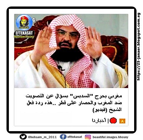 الفيديو الذي تبلغ مدته 26 ثانية ، سأل خلاله الناشط المغربي ، الشيخ السديس ، عن موقفه من "حصار قطر"، وتصويت السعودية لصالح الملف الأمريكي لاستضافة مونديال 2026 على حساب ملف المغرب.