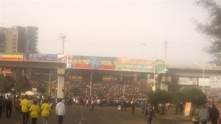 وكان أبيي قد انهى للتو أمام عشرات الآلاف من الأشخاص الذين تجمعوا في ساحة ميسكيل، خطابه عندما وقع انفجار صغير أدى الى اندفاع الحشد باتجاه المنصة التي غادرها رئيس الوزراء بسرعة سالما كما يبدو. وقال أحد أفراد اللجنة المنظمة للتجمع "كانت قنبلة يدوية حاول شخص إلقاءها على المنصة التي كان رئيس الوزراء واقفا عليها".