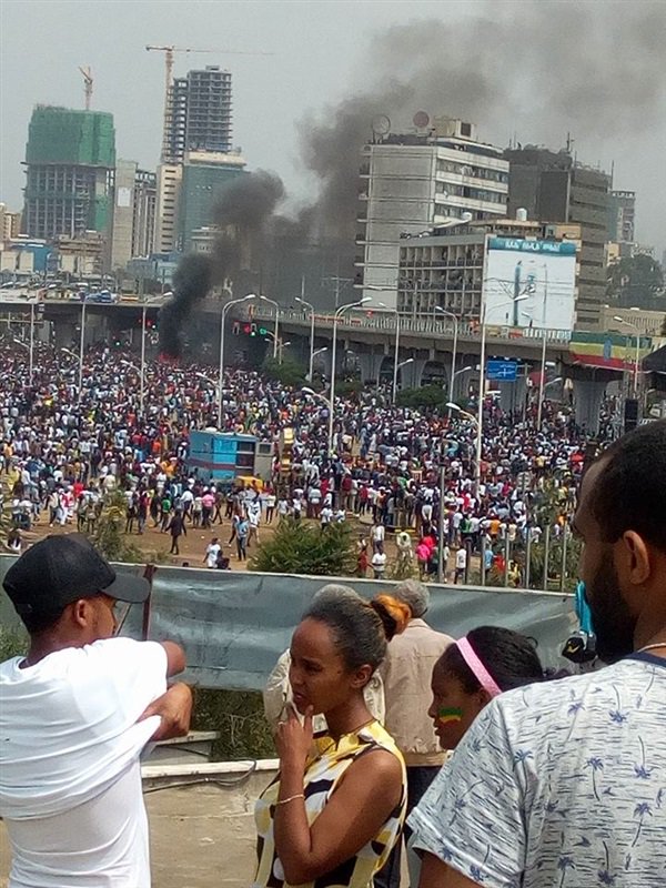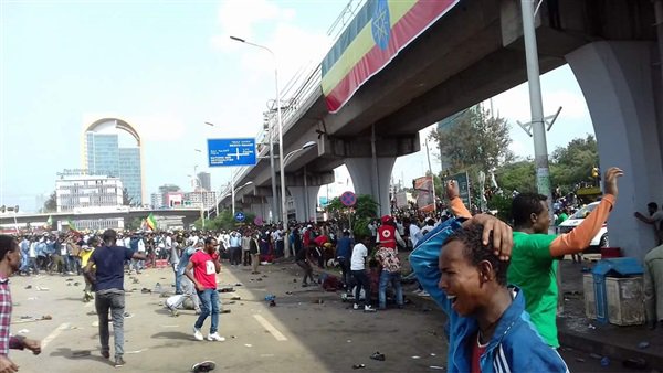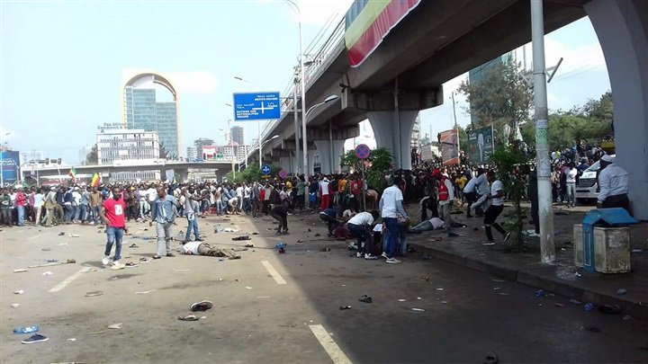 صور مقتل وإصابة عشرات بتفجير لتجمع مؤيدي رئيس وزراء اثيوبيا و استهداف رئيس الوزراء الإثيوبي بقنبلة يدوية على المنصة